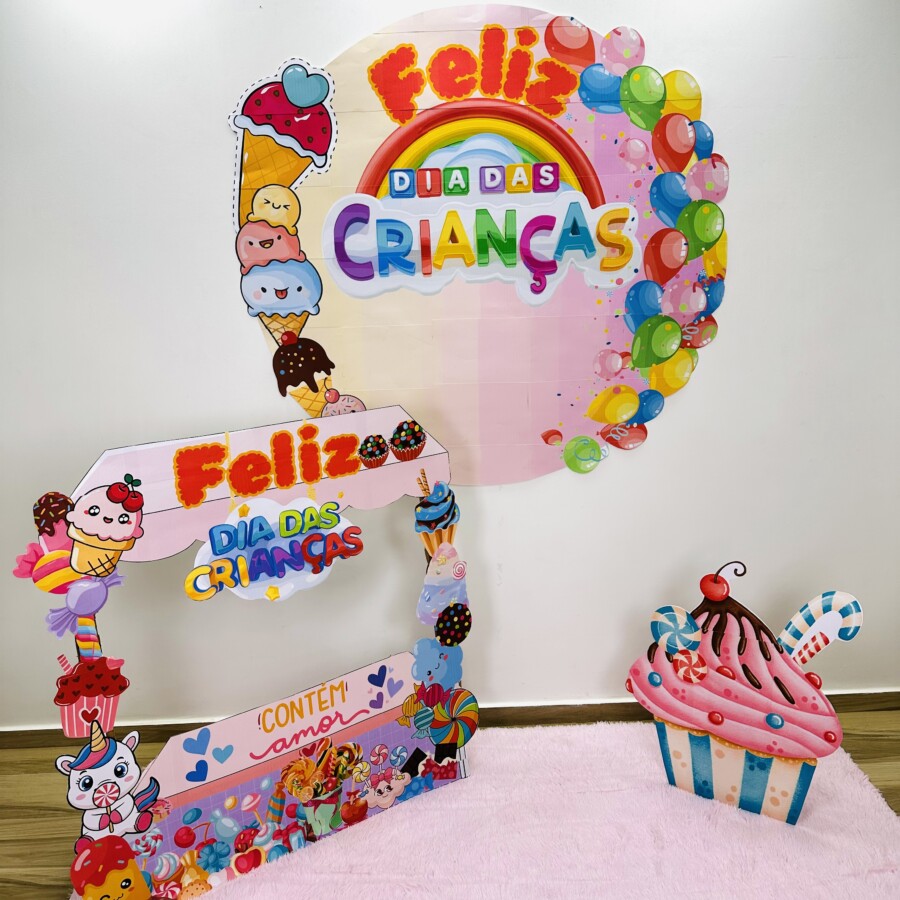 🍭✨ Kit Decorativo – Feliz Dia das Crianças (Tema Doces e Cores) ✨🍭