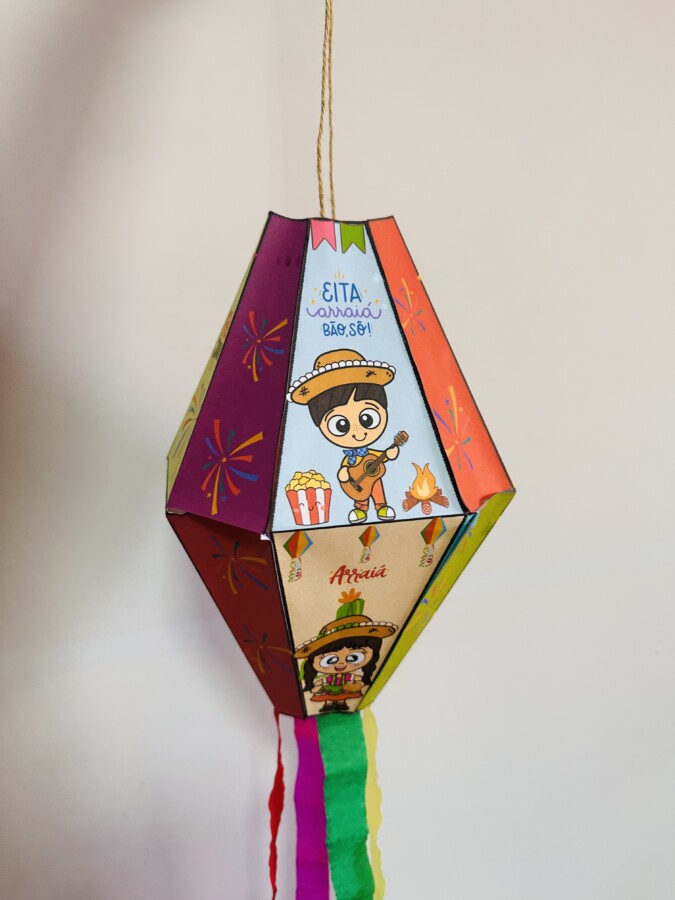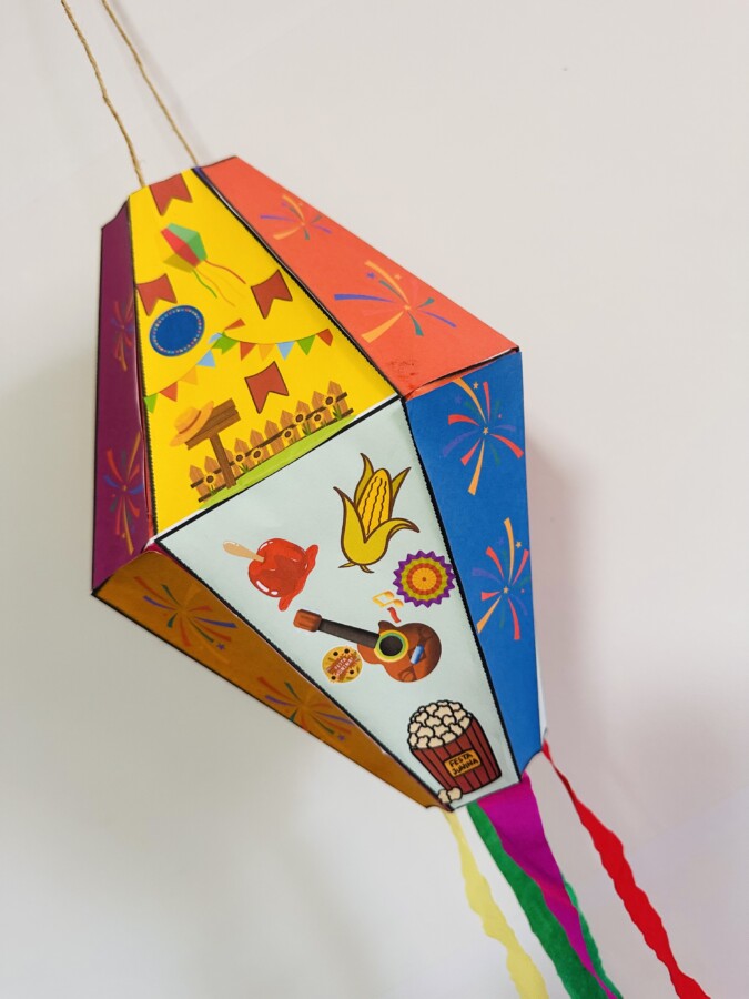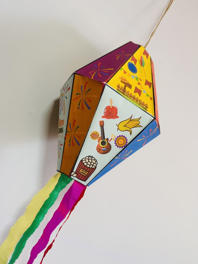 São 4 folhas a4, coloridas no tema junino, altura 26,5 e largura 19cm