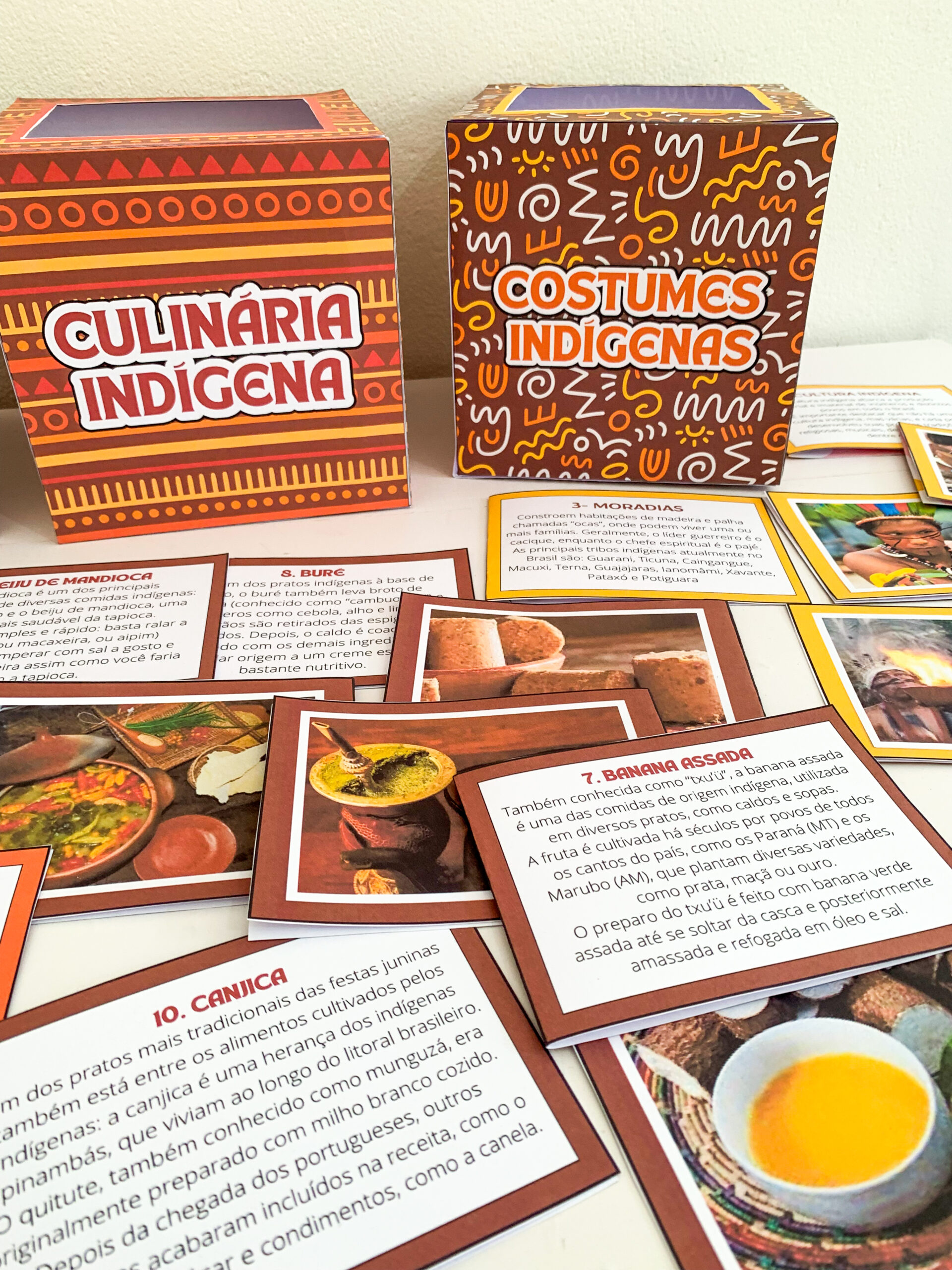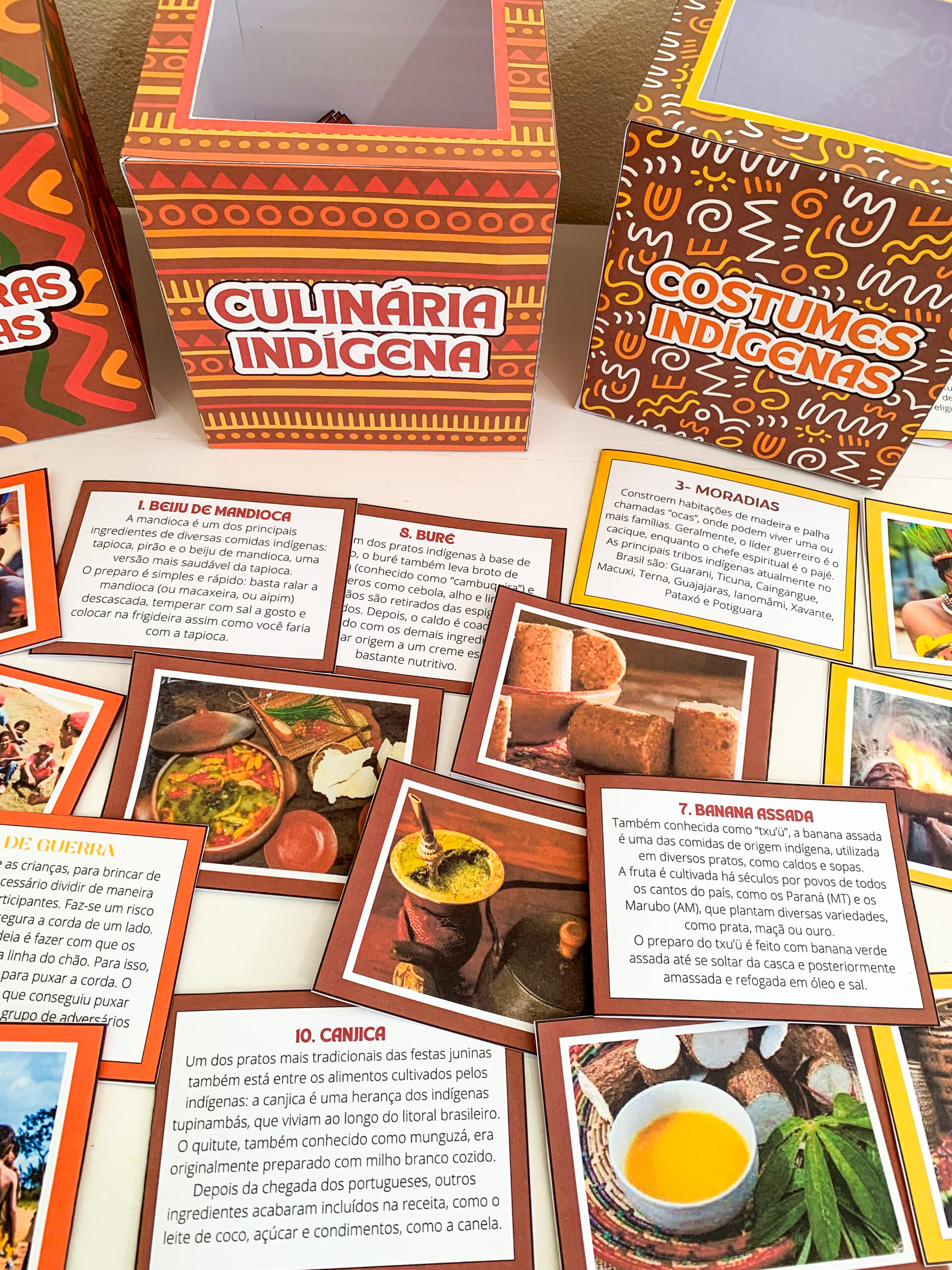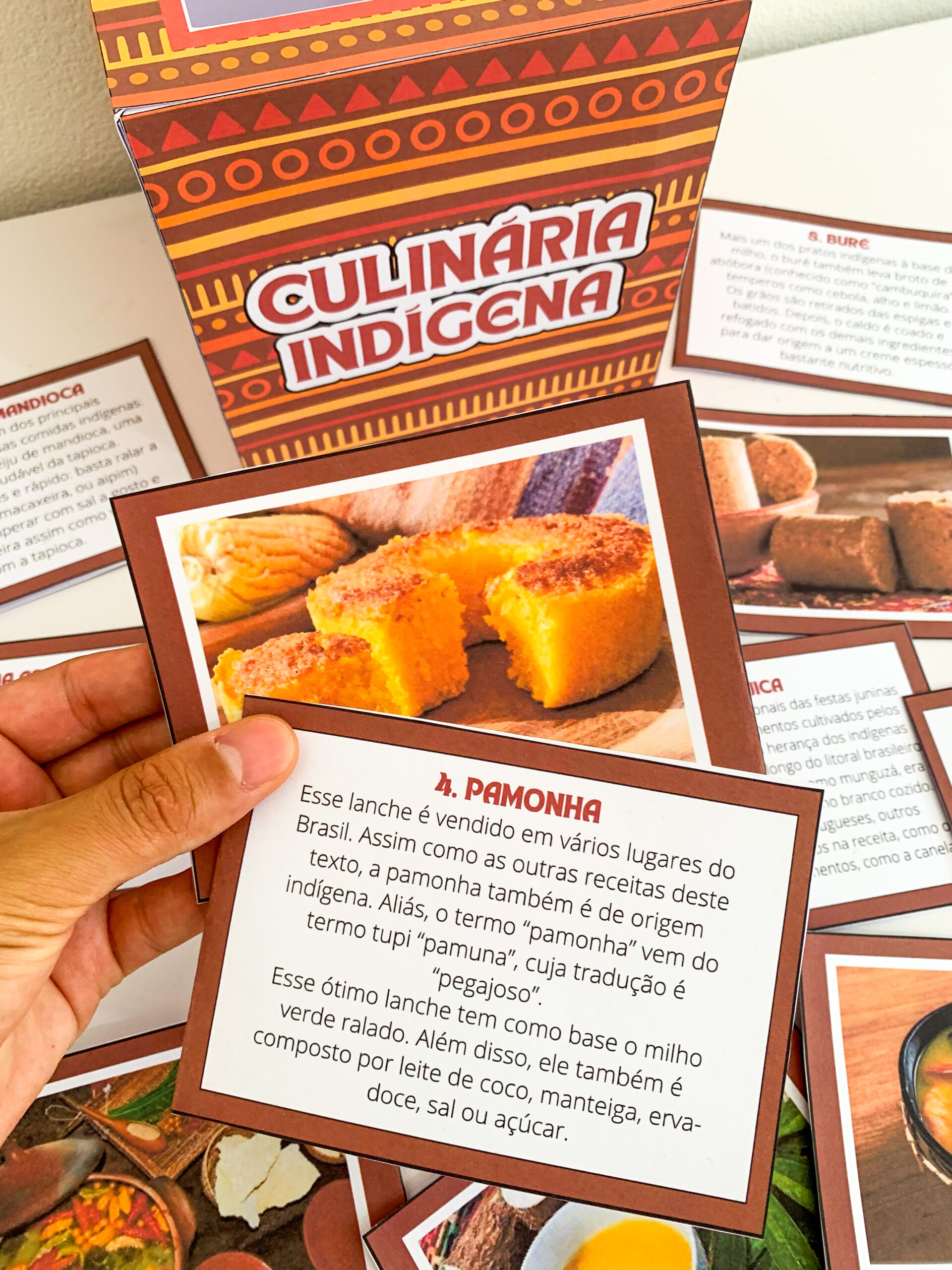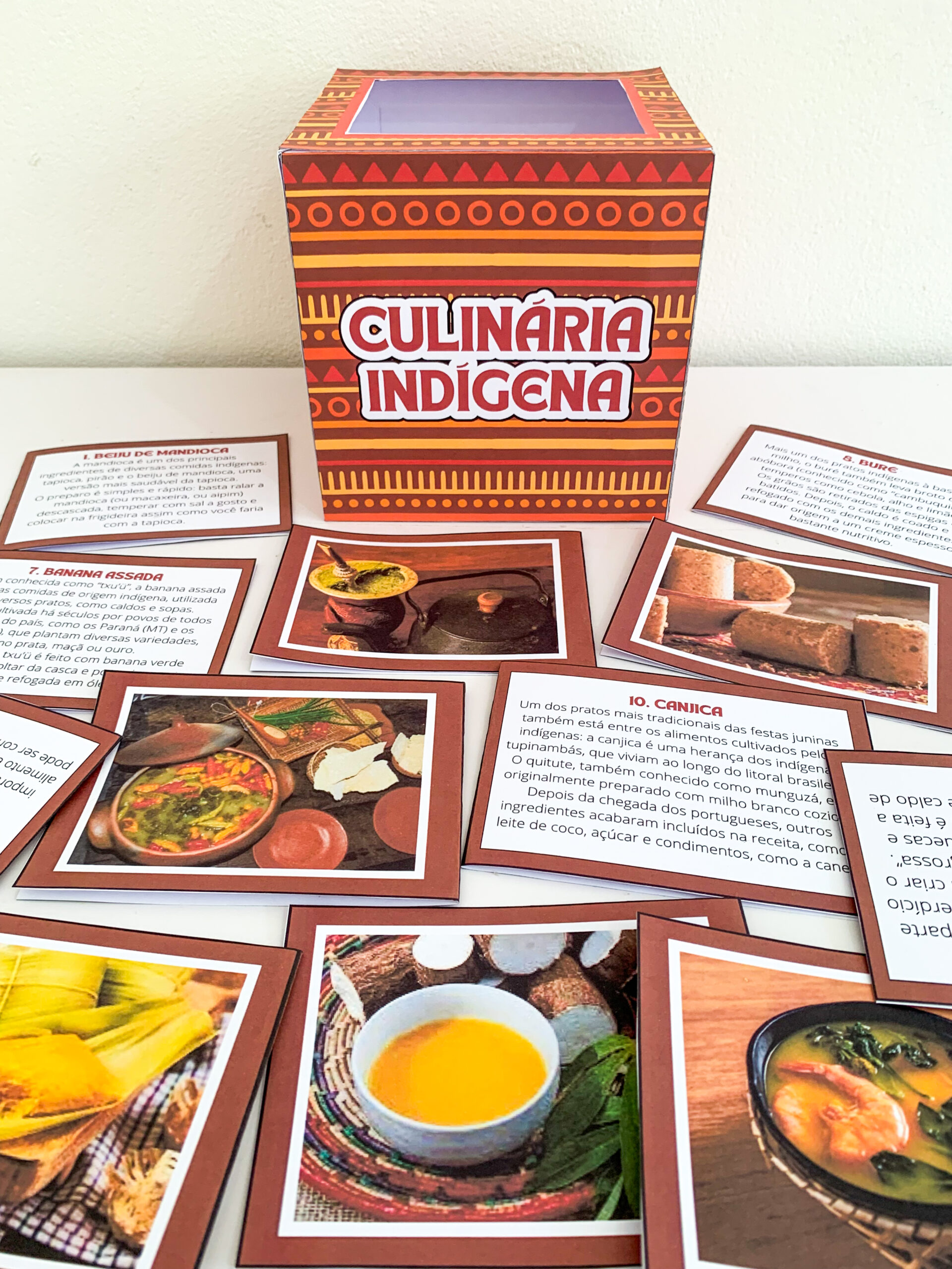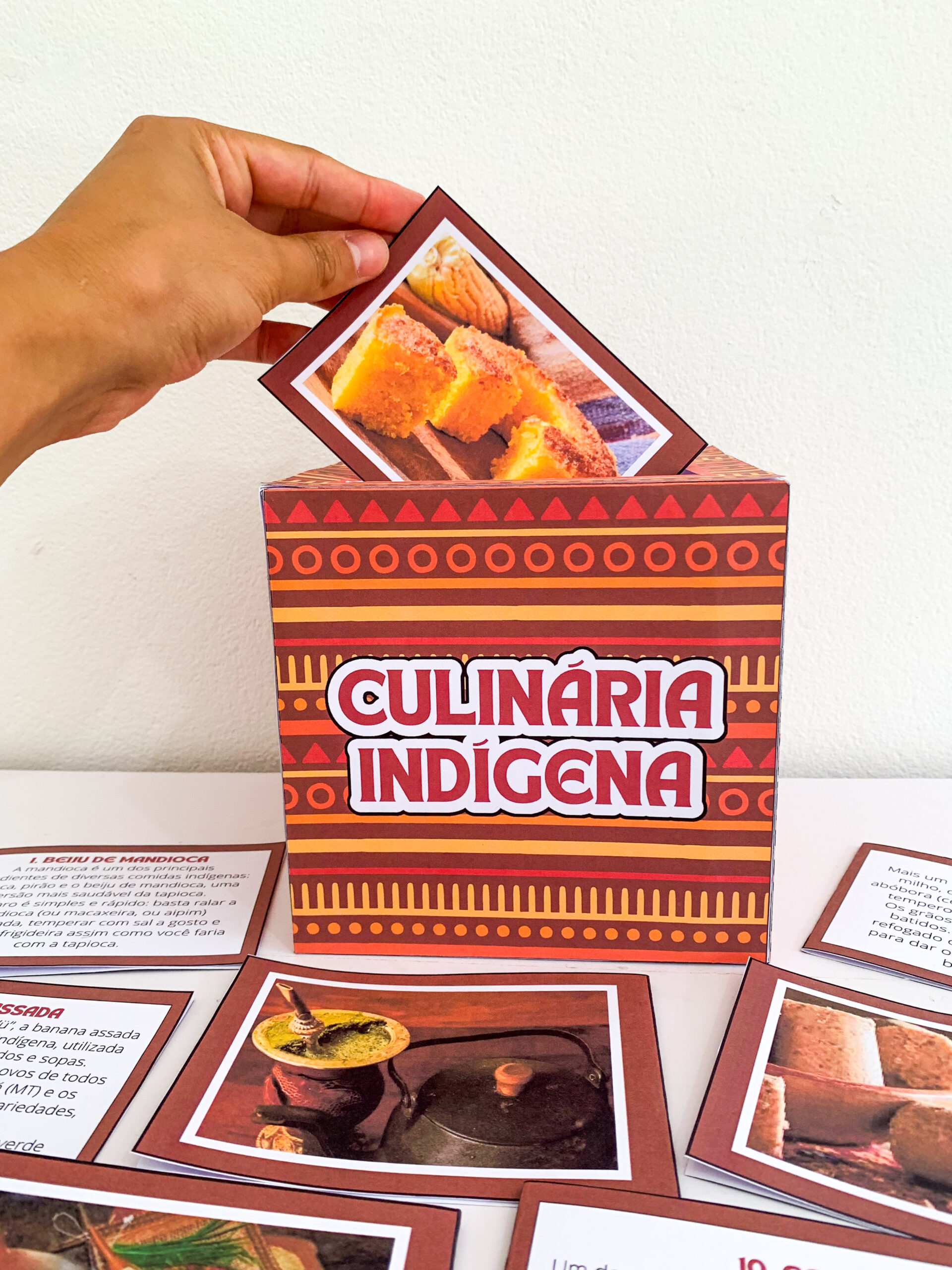 Cada caixa traz fichas ricas em culinária tradicional,