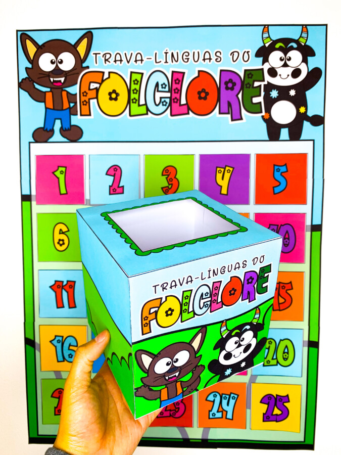 São 25 trava-línguas organizados em diferentes níveis de dificuldade, pensados para envolver e desafiar desde os pequenos até os mais experientes – tudo isso com uma caixa de sorteio que torna a atividade ainda mais dinâmica e divertida.