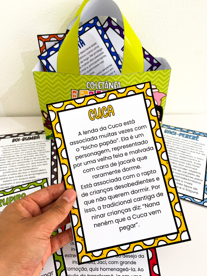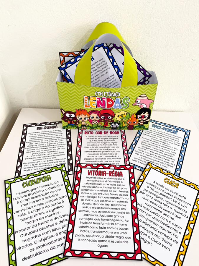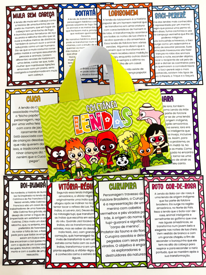 % Cada ficha traz uma lenda escrita com linguagem acessível, perfeita para trabalhar: