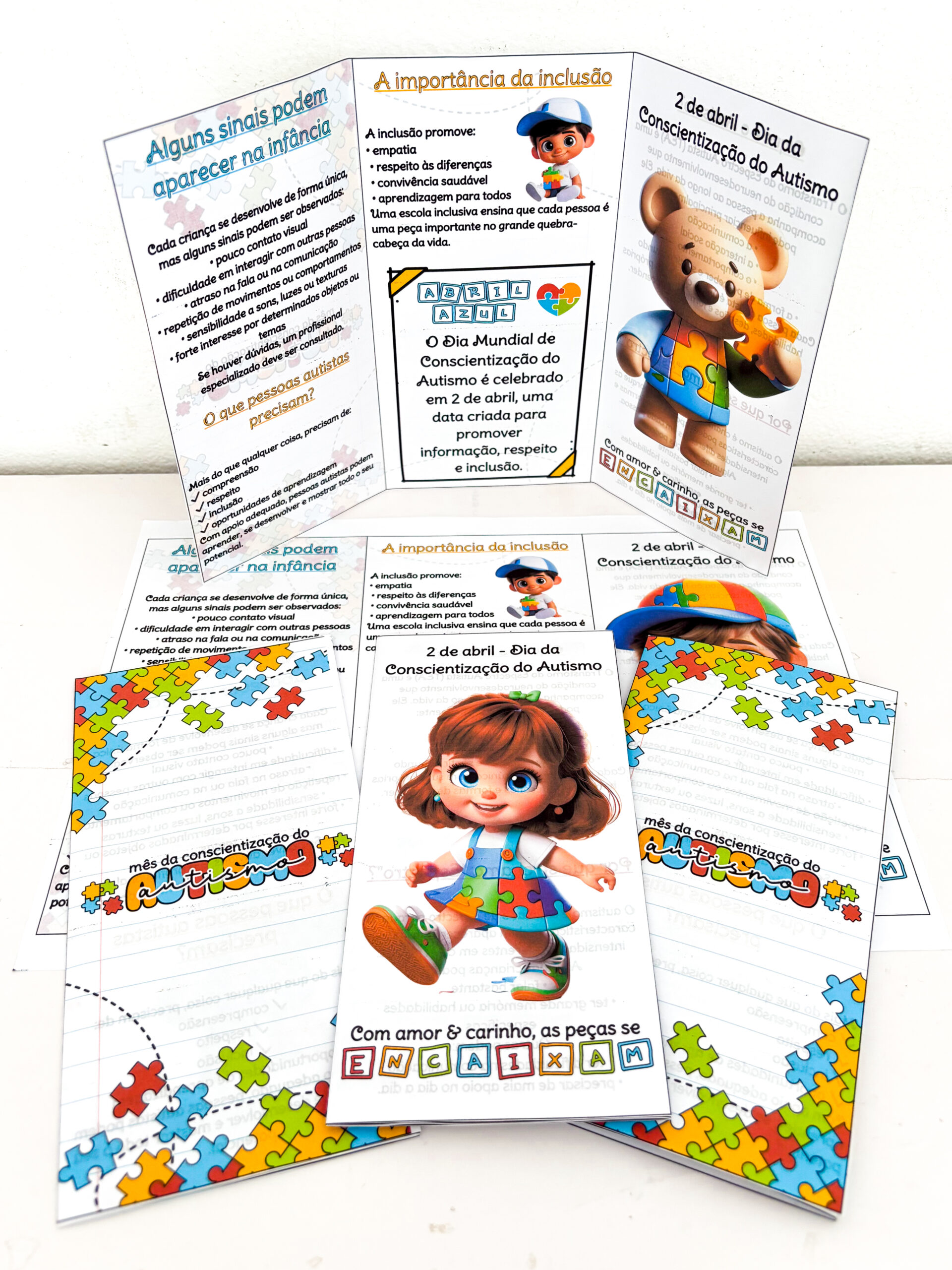 Além disso, os folders têm visual infantil, colorido e cheio de