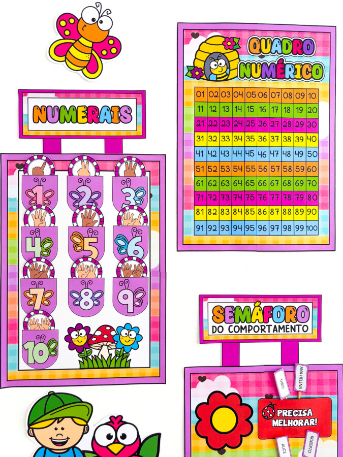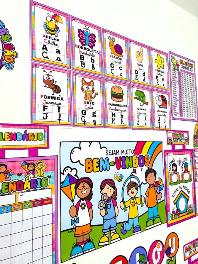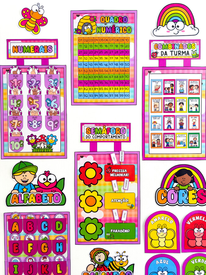 Com uma proposta visualmente atrativa e pedagogicamente completa, o kit organiza a rotina escolar, fortalece a aprendizagem e deixa o espaço ainda mais bonito e funcional para a Educação Infantil e Anos Iniciais.
