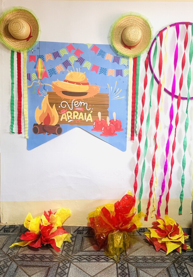 Painel junino em formato de bandeirinha