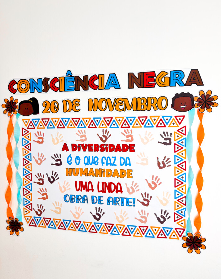 Celebre o Dia da Consciência Negra com este painel vibrante, colorido e cheio de significado, ideal para escolas, eventos educativos e projetos culturais que valorizam a diversidade, a identidade e o respeito.