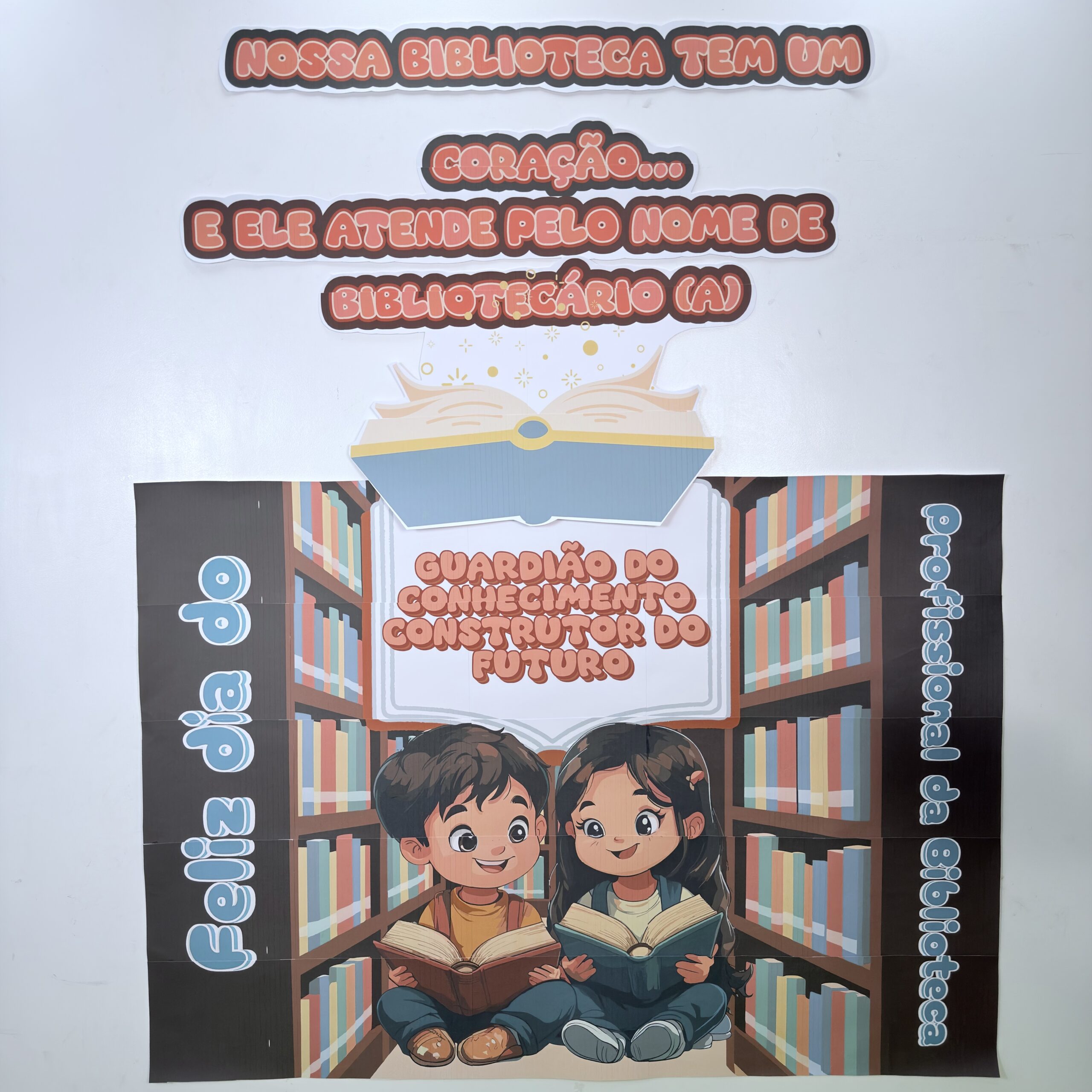 Material pedagógico e decorativo criado para valorizar o papel da biblioteca escolar e reconhecer o trabalho do bibliotecário(a) como mediador do conhecimento e incentivador da leitura.