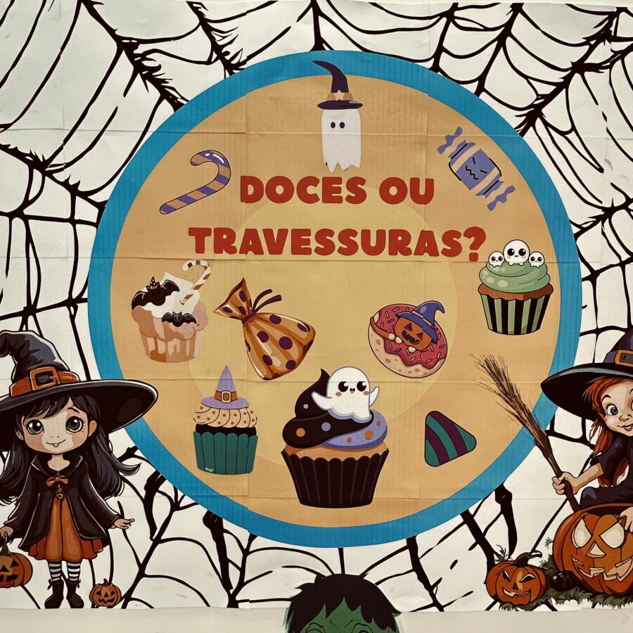 Transforme sua sala em um verdadeiro cenário de Halloween com este painel encantador e divertido, ideal para decorar festas, murais escolares e projetos pedagógicos temáticos!