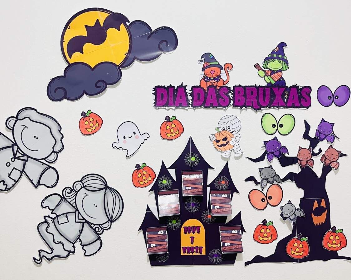sendo todo ele em cores preto, roxo, trazendo mais característica a data do dia das bruxas