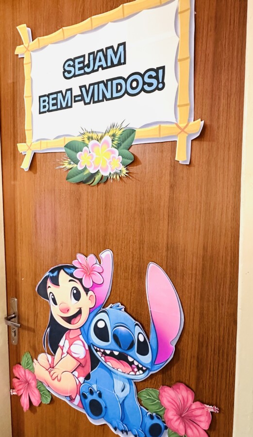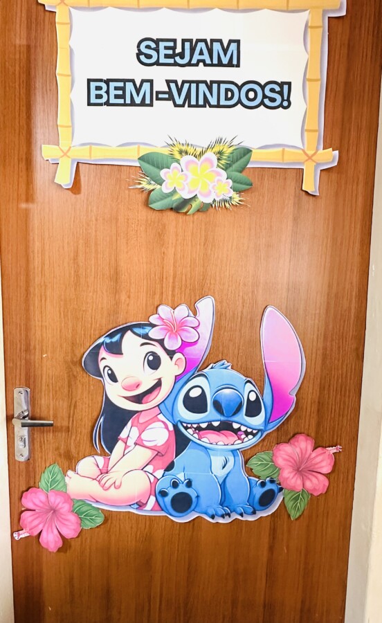 Painel porta Tema Stitch, ótimo recurso pra receber as crianças